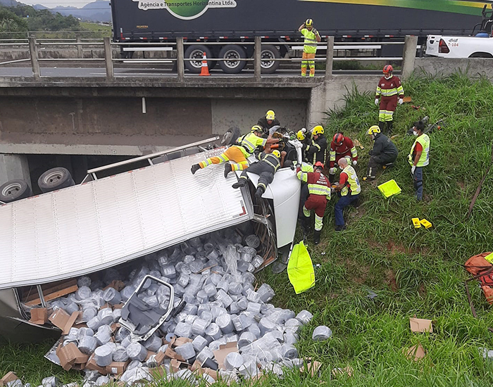 O veículo estava carregado com bobinas de borracha. Por conta do acidente, o trânsito no trecho apresentou lentidão.