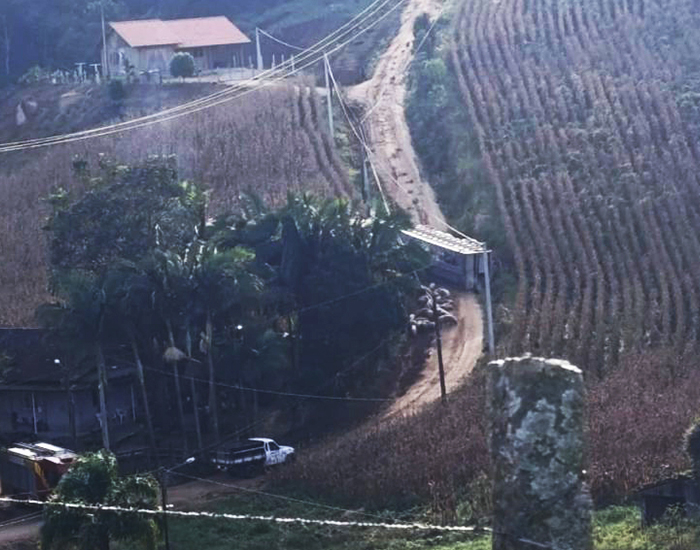 Foto: EA Notícias/DS Um caminhão carregado com porcos tombou ontem pela manhã na estrada geral do bairro Pinheiral, em Braço do Norte. Segundo informações, o veículo deslizou na estrada de chão, fazendo com que o condutor perdesse o controle.