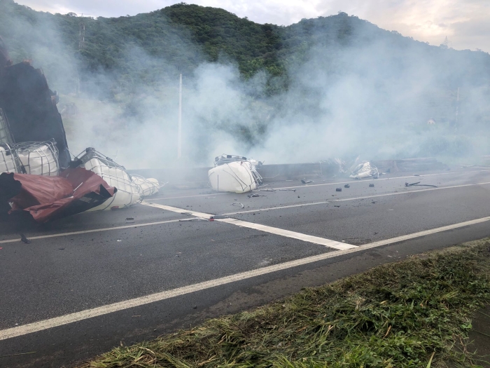 A substância, que é perigosa, entrou em contato com a vegetação, gerando uma fumaça tóxica
