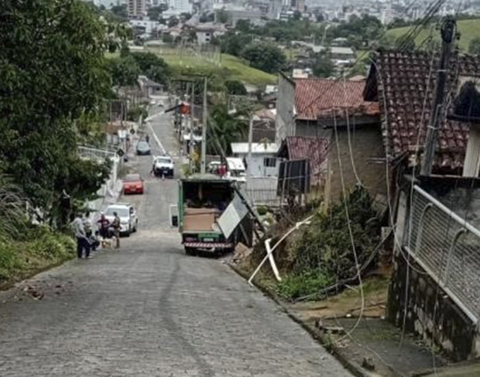 Um catador de lixo ficou ferido após o caminhão de coleta apresentar falha mecânica e colidir com um poste e o muro de uma casa no bairro União, em Braço do Norte. O acidente ocorreu por volta das 10h de segunda-feira.