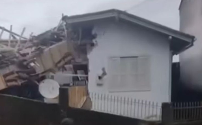 Um caminhão de coleta de lixo perdeu o controle e atingiu uma residência no bairro São Martinho, em Tubarão, destruindo parcialmente a estrutura superior, com destroços de madeira e telhados amontoados. A moradora idosa não estava em casa e ninguém se feriu.