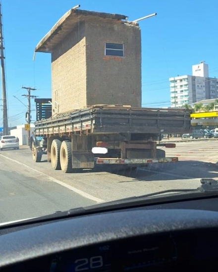 “A construção estava amarrada apenas com alguns arames e nada garantia que com um solavanco, frenagem ou mudança de direção, por parte do condutor, fizesse com que o banheiro tombasse ou desmoronasse durante o deslocamento”, explicou a Polícia Militar Rodoviária (PMRv).
