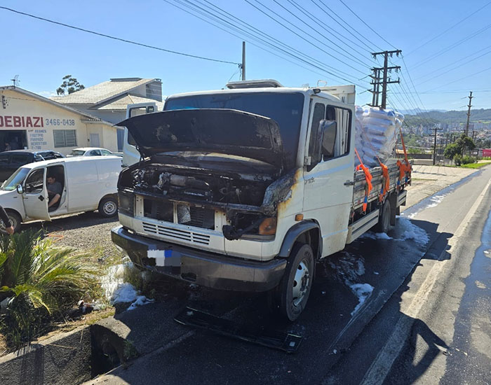 Um incêndio atingiu a cabine de um caminhão na tarde de quarta-feira, na SC-108, no bairro Corridas, em Orleans.