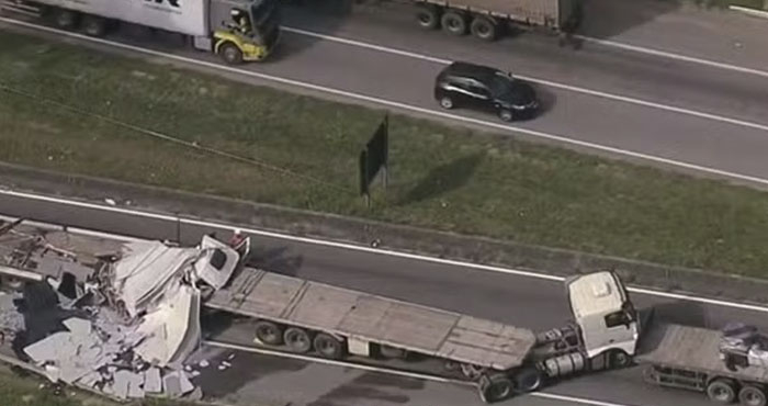 Equipes do Corpo de Bombeiros, da perícia e da concessionária RioSP (antiga CCR) atenderam à ocorrência. A empresa informou que uma das cargas de granito caiu sobre a pista e que o trecho seguia interditado até a tarde de quinta-feira.