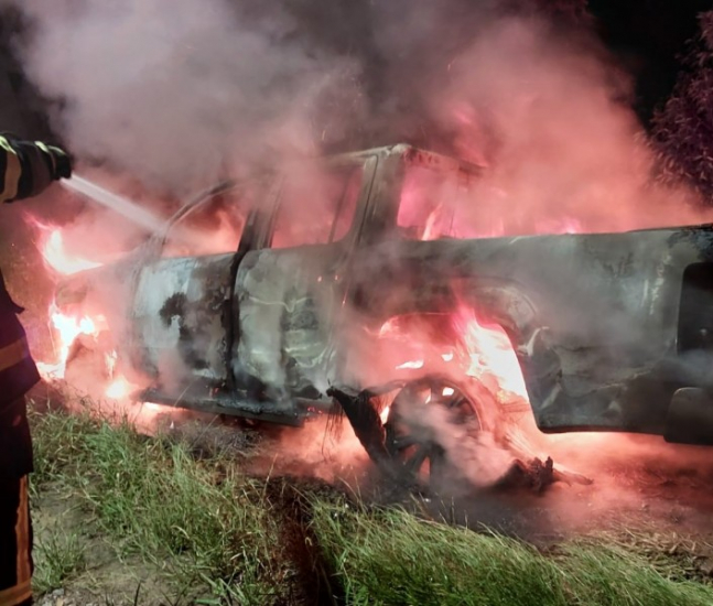Uma caminhonete Volkswagen Amarok, com placas de Grão-Pará, foi destruída por incêndio.