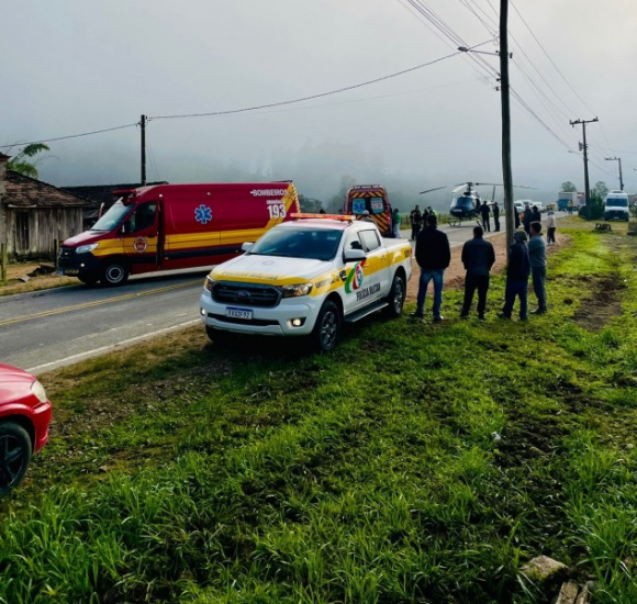 Um grave acidente de trânsito envolvendo um Gol deixou duas pessoas feridas na SC-390, em Pedras Grandes. Foi uma saída de pista seguida de capotamento registrado nesta segunda-feira, no bairro Ilhota. A ocorrência foi atendida por equipes de bombeiros de Orleans e Tubarão, além da Polícia Militar Rodoviária (PMRv).