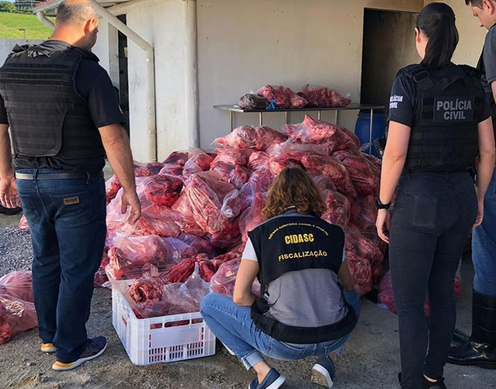 Três toneladas de carne suína foram apreendidas em uma operação realizada pela Polícia Civil e pela Cidasc. O produto foi encontrado em um abatedouro clandestino no bairro Baixo Pinheiral, em Braço do Norte.