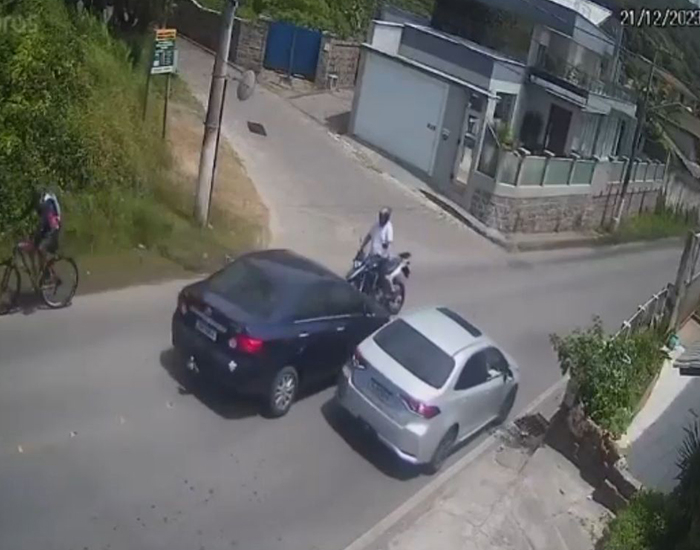 Um grave acidente de trânsito foi registrado nessa quinta-feira, em Laguna, na rua Luiz Severino Duarte, na região do Iró. Um motociclista trafegava em sua pista quando foi surpreendido por um Toyota Corolla, na contramão. Uma câmera de segurança flagrou o momento.