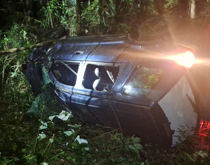 Um carro saiu da pista, atingiu um poste da rede de alta tensão e capotou em uma ribanceira de cerca de 15 metros na SC-108, em Braço do Norte. A ocorrência foi registrada por volta das 23h de domingo, no bairro Travessão.