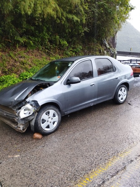 Na Serra do Rio do Rastro, um carro bateu na lateral de um caminhão em uma curva fechada da SC-390.