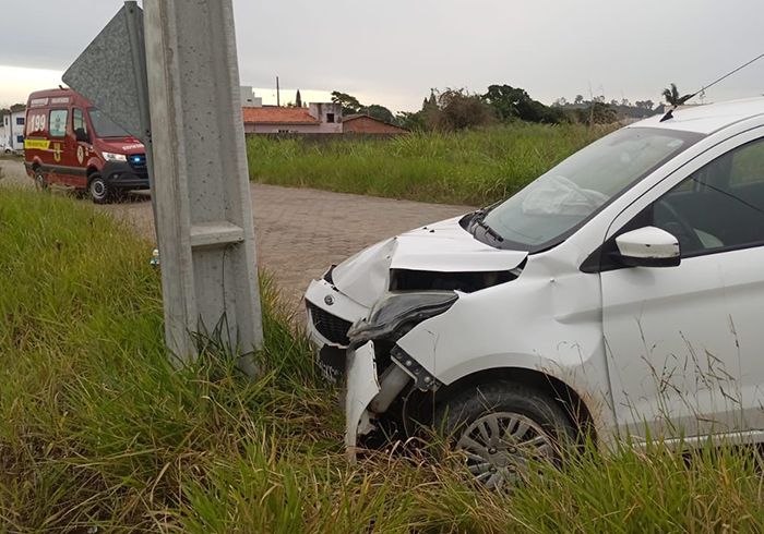 Um motorista de 45 anos ficou ferido após colidir o carro contra um poste de energia elétrica no Centro de Jaguaruna. O acidente ocorreu por volta das 11h10 desta quarta-feira. Segundo os Bombeiros Voluntários, o homem conduzia um Ford Ka, com placas de Laguna, quando perdeu o controle da direção e atingiu o poste.