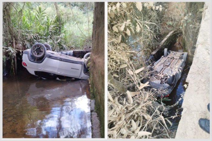 De acordo com o Corpo de Bombeiros, o veículo, um Jeep Compass, despencou de uma altura aproximada de três metros após sair da estrada. Duas pessoas estavam no interior do carro e foram retiradas por moradores da região antes da chegada das equipes de socorro.