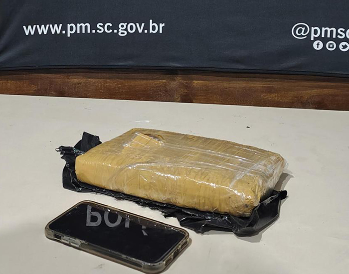 Durante as buscas, a guarnição localizou um tablete de aproximadamente 1 quilo de skunk, também conhecida como supermaconha.