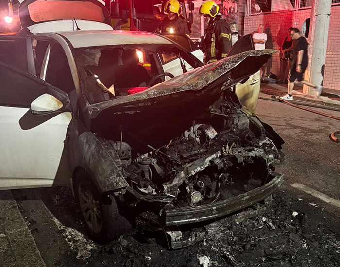 Carro pega fogo no Centro e mobiliza bombeiros durante a noite