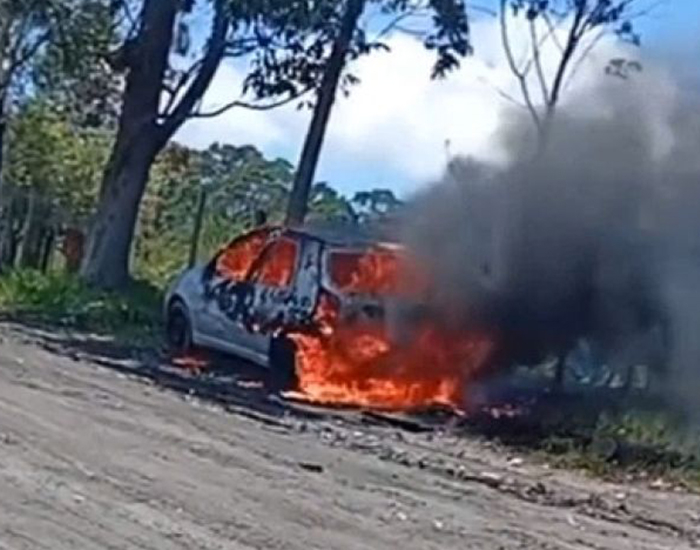 Um veículo Palio foi destruído por um incêndio na manhã desta terça-feira, na região da Estiva, em Pescaria Brava. O fogo se alastrou e tomou todo o automóvel, sendo controlado apenas após a chegada do Corpo de Bombeiros.