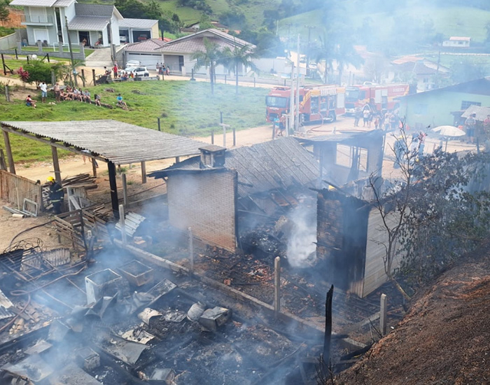 A guarnição do Corpo de Bombeiros de Braço do Norte foi acionada para um incêndio em uma residência no município de Armazém no bairro Olaria.