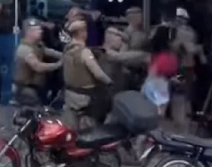 No mesmo momento, a companheira dele, de 29 anos, jogou uma cadeira na direção dos agentes. Ela também recebeu voz de prisão, resistiu com chutes e ameaçou os policiais. Ambos foram levados para a delegacia.