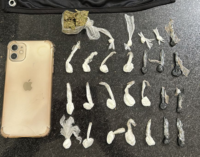 Durante a abordagem, foram encontradas quatro porções de crack prontas para a venda. Em seguida, os policiais realizaram buscas na residência dos suspeitos, onde localizaram mais oito porções de crack, 14 porções de cocaína e uma porção de maconha, todas embaladas e preparadas para comercialização.