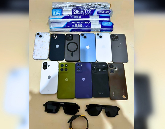 Também foram apreendidos rolos de papel alumínio. De acordo com a Polícia Militar, o material poderia estar sendo usado para tentar dificultar a localização dos aparelhos.