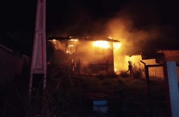 Não houve vítimas, mas as chamas chegaram a atingir o teto do imóvel, que tem 44 metros quadrados e é feito de alvenaria.