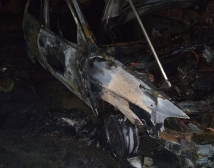 Quando a guarnição do Corpo de Bombeiros chegou no local, o carro estava estacionado no quintal da residência do motorista e já estava completamente destruído pelas chamas. O motorista informou que estava fumando e que o incêndio aconteceu após deixar o cigarro cair, por descuido, no banco do veículo.