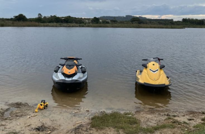 Uma colisão envolvendo duas motos aquáticas deixou um homem de 33 anos ferido na tarde desta sexta-feira (18), na lagoa do Campo Bom, em Jaguaruna.