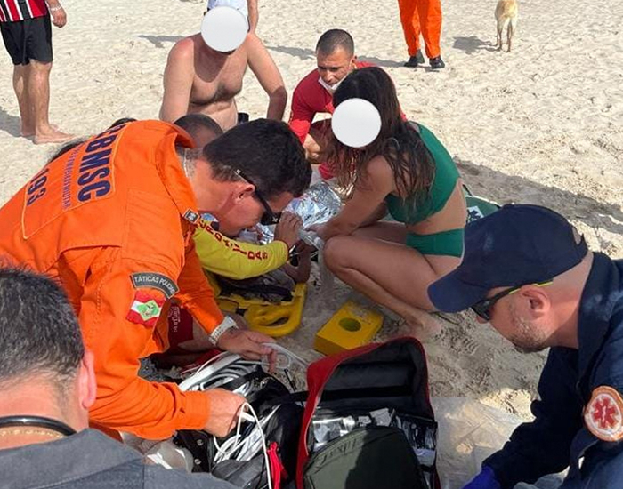 A vítima estava inconsciente e um dos guarda-vidas iniciou as manobras de tapotagem, fazendo com que a criança expelisse água. Logo depois, a vítima apresentou dispneia, palidez e falta de pulso. O helicóptero Arcanjo-01 foi acionado e encaminhou a criança para o Hospital Infantil Joana de Gusmão, de Florianópolis. A família é de São Paulo, segundo os bombeiros.