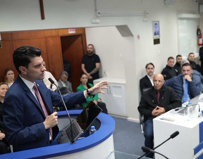 A Câmara de Vereadores de Tubarão recebeu, nesta semana, a visita do delegado-geral da Polícia Civil de Santa Catarina, Ulisses Gabriel, e da delegada Caroline de Campos Vicente de Bona Portão, diretora de Polícia do Sul e conselheira superior da instituição.