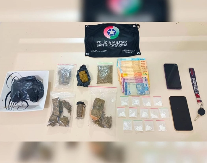 Ao todo, foram aprendidos 219,2 gramas de maconha, 15,6 gramas de cocaína e R$ 617 em dinheiro, além do veículo utilizado para o crime.