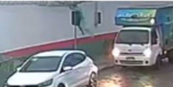 Uma câmera de segurança flagrou o momento e mostra o homem correndo pela rua, debaixo de chuva, após deixar a unidade. O homem cumpria pena em regime de regalia.