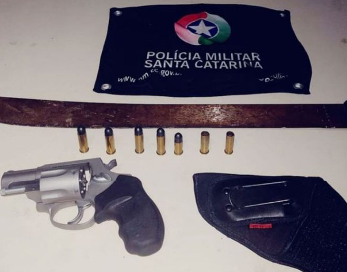A arma de fogo e os demais objetos foram apreendidos e o suspeito foi encaminhado à Polícia Civil para os procedimentos cabíveis.