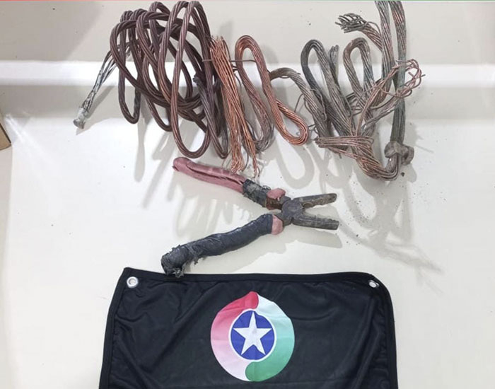 Ao notar a presença dos militares, a dupla escondeu algo em uma lixeira. Dentro dela, os policiais encontraram aproximadamente 10 metros de fio de cobre e um alicate.