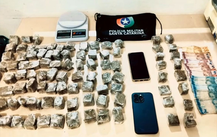 Dois homens, de 20 e 25 anos, foram presos em flagrante por tráfico de drogas, em Tubarão. Segundo a Polícia Militar, eles realizavam a venda de entorpecentes na modalidade tele-entrega.