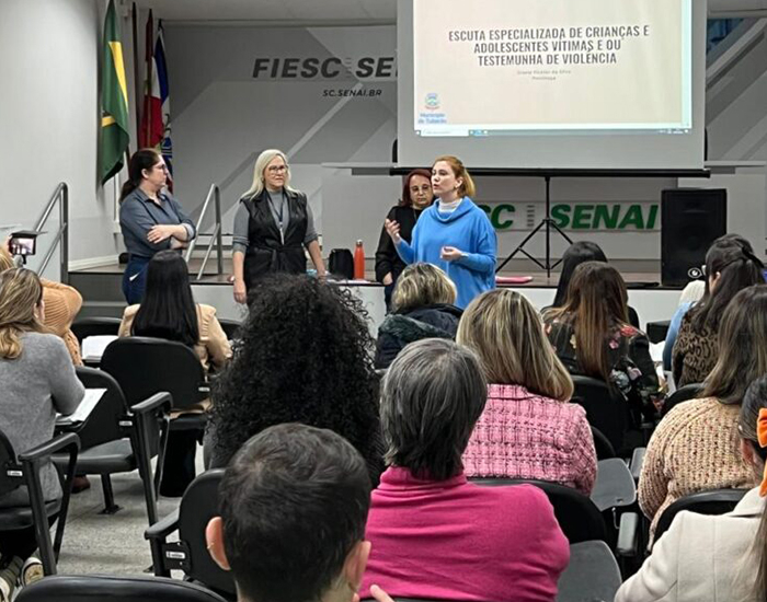 Escuta especializada de crianças e adolescentes vítimas ou testemunha de violência foi o tema de uma capacitação promovida na tarde de ontem, em Tubarão. A palestra destinada a diretores, assessores pedagógicos e coordenadores pedagógicos dos centros de educação infantil (CEI) credenciados à rede municipal de Educação aconteceu na sede do Senai.