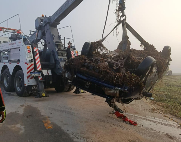 Os dois não possuíam documentos. O jovem de 21 anos, que conseguiu sair do interior do veículo, foi encaminhado apenas com escoriações ao hospital, em Jaguaruna. Foi necessário a utilização de um guincho para realizar a retirada do veículo de dentro do rio.