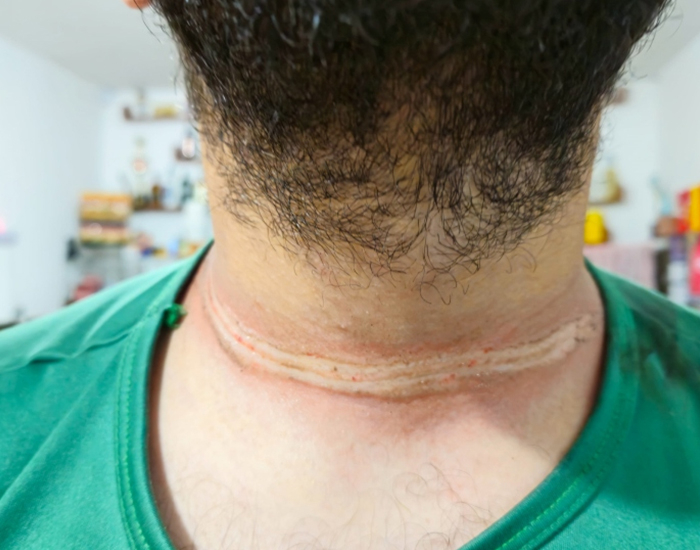 FOTO: FOLHA REGIONAL/DS Um motociclista ficou ferido após um fio de telefonia solto enroscar em seu pescoço, no Campo Bom, em Jaguaruna. Ele também machucou o pé e o braço. O motociclista estava a caminho do trabalho quando o acidente ocorreu.