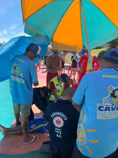 A vítima permaneceu na água por mais de uma hora até ser retirada por colegas de trabalho. Equipes de primeiros socorros do próprio parque, juntamente com bombeiros da guarnição da Praia do Morro dos Conventos, iniciaram imediatamente os procedimentos de ressuscitação cardiopulmonar. O atendimento contou ainda com o apoio do serviço aeromédico do SAER.