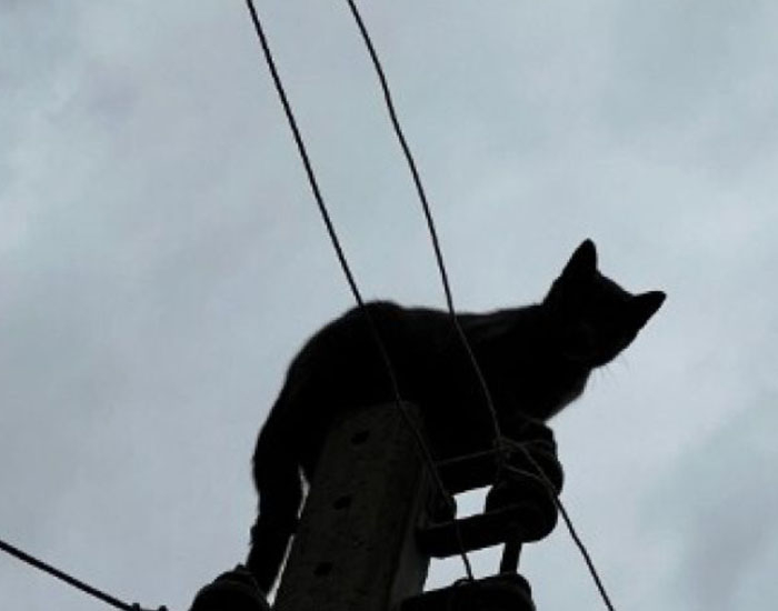 Gato é resgatado após se refugiar em poste ao fugir de ataque de cães
