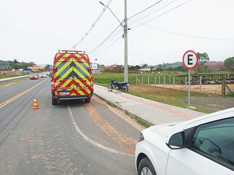 O acidente foi registrado por volta das 7h30 da manhã dessa quinta-feira, na rodovia Gregório Espíndola, a SC-443.