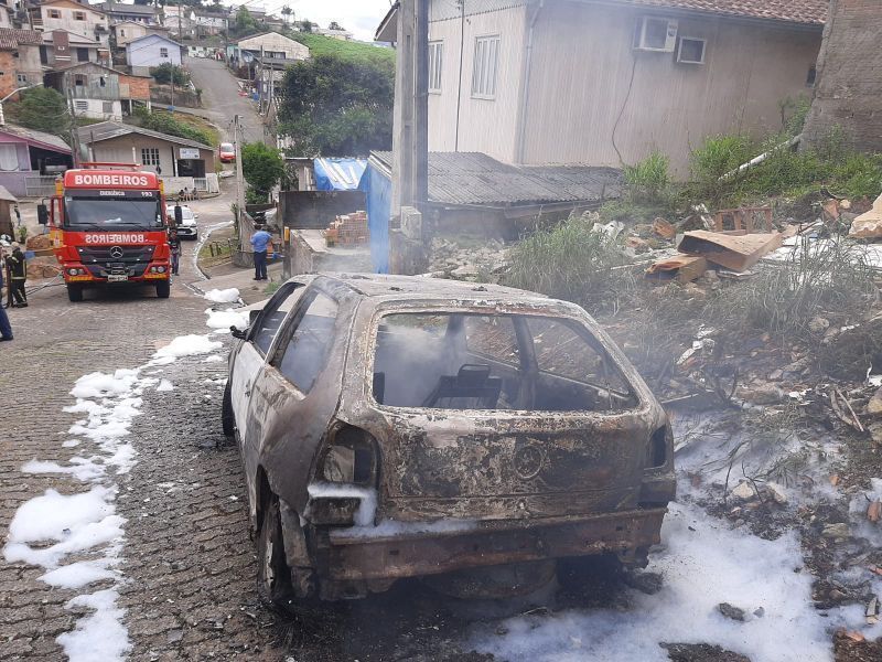Um incêndio em veículo mobilizou o Corpo de Bombeiros na tarde deste sábado, em Orleans. Segundo populares, um homem teria ateado fogo nem um carro e fugiu em seguida.