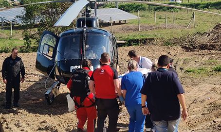 POLÍCIA CIVIL/DS Um homem de 56 anos foi encaminhado ao hospital de helicóptero após cair de um caminhão em movimento, em Braço do Norte. A ocorrência foi atendida ontem, pelo Sarasul e pelo Samu.