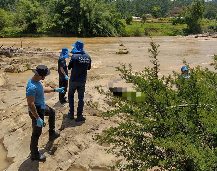 Um corpo foi encontrado na manhã desta quinta-feira no Rio Hipólito, na divisa entre os municípios de Pedras Grandes e Orleans. A ocorrência mobilizou equipes da Polícia Militar, do Corpo de Bombeiros, da Polícia Civil e Científica.