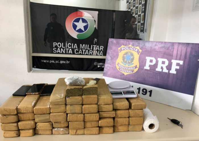 Um homem de 29 anos, que estava transportando em um veículo mais de 37 quilos de maconha de Palhoça para Tubarão, foi preso em uma operação conjunta entre a Polícia Militar (PM) e Polícia Rodoviária Federal (PRF). A prisão aconteceu após o suspeito ser visto descarregando a droga do carro nesta quinta-feira.