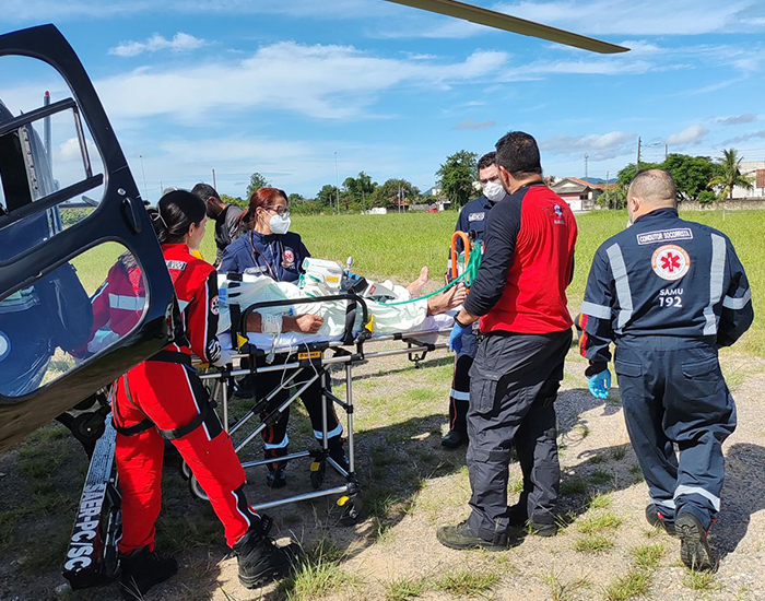 De acordo com a Polícia Civil, a vítima apresentava um quadro grave de traumatismo craniano e foi levada ao hospital do município. Após estabilização, ele foi encaminhado ao Hospital Nossa Senhora da Conceição, em Tubarão. A equipe do Samu também prestou apoio na ocorrência.