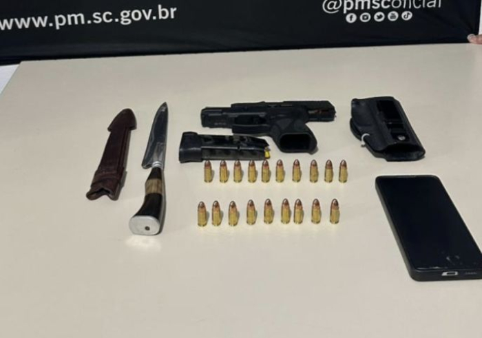 Na sequência, em revista ao veículo, a guarnição também localizou uma faca e uma embalagem contendo nove munições calibre 9mm intactas. Diante da situação, foi dada voz de prisão ao homem, que foi encaminhado à Central de Polícia Civil de Tubarão, onde ficou à disposição da Justiça.