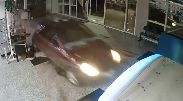Ela foi perseguida pelo suspeito até o local de trabalho, onde ele quebrou uma das portas da entrada do mercado com o veículo, em marcha ré.