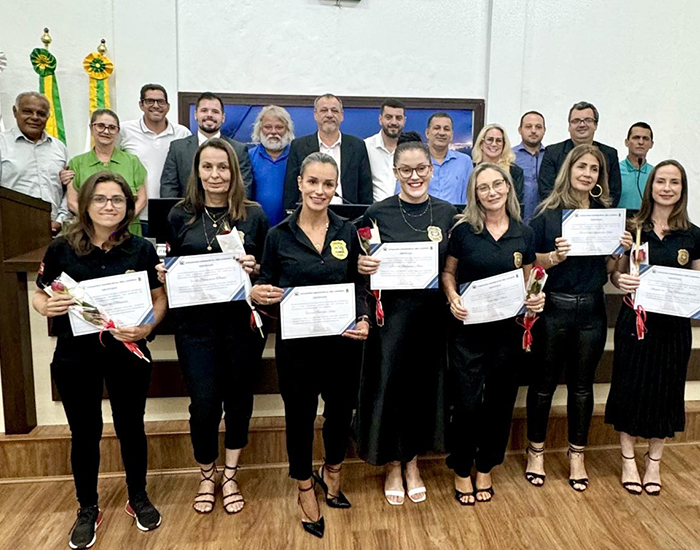 Uma policial civil de cada unidade de Laguna recebeu uma homenagem em alusão ao Dia Internacional das Mulheres, na Câmara de Vereadores da Cidade Juliana, nesta terça.