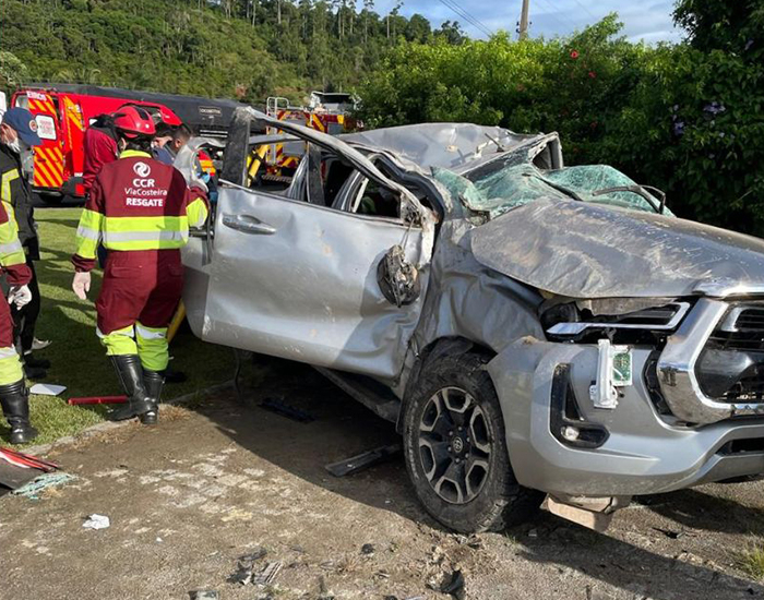 Uma idosa de 68 anos, que estava na caminhonete, foi ejetada do veículo. Ela apresentava estado de saúde instável, com suspeita de fratura na face, hemorragia interna e traumatismo craniano leve (TCE). A vítima foi atendida inicialmente pela equipe da concessionária e, na sequência, encaminhada pelo Corpo de Bombeiros ao Hospital São Camilo, em Imbituba.