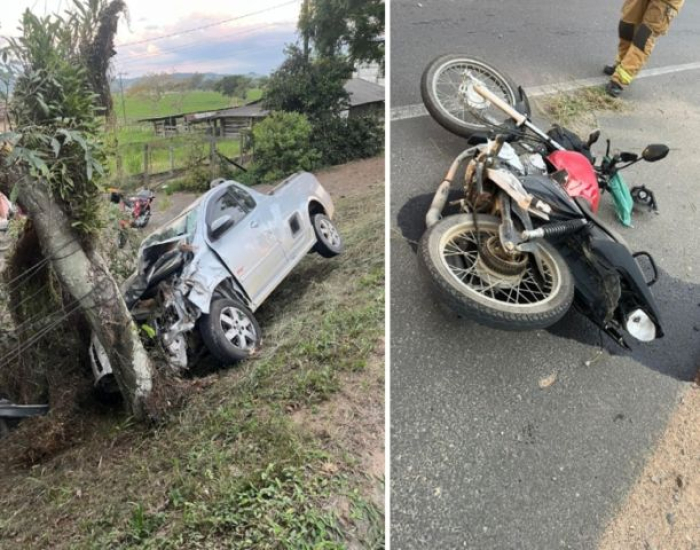 De acordo com o Corpo de Bombeiros, a colisão envolveu um Chevrolet Montana e uma motocicleta Honda CG 160.