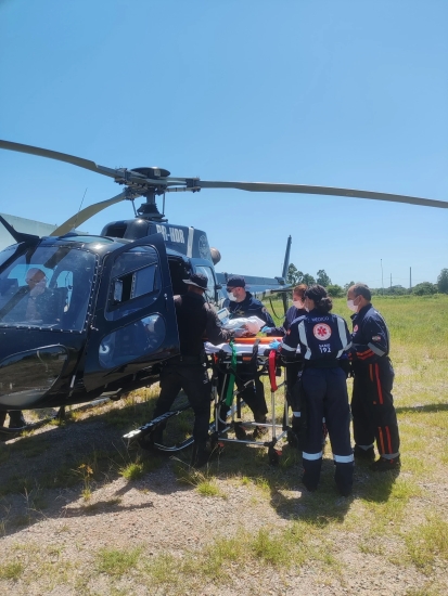 O serviço aeromédico foi acionado e encaminhou o homem de helicóptero para o Hospital Nossa Senhora da Conceição (HNSC) de Tubarão.